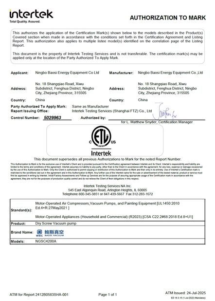 • Китай Ningbo Baosi Energy Equipment Co., Ltd. Сертификаты